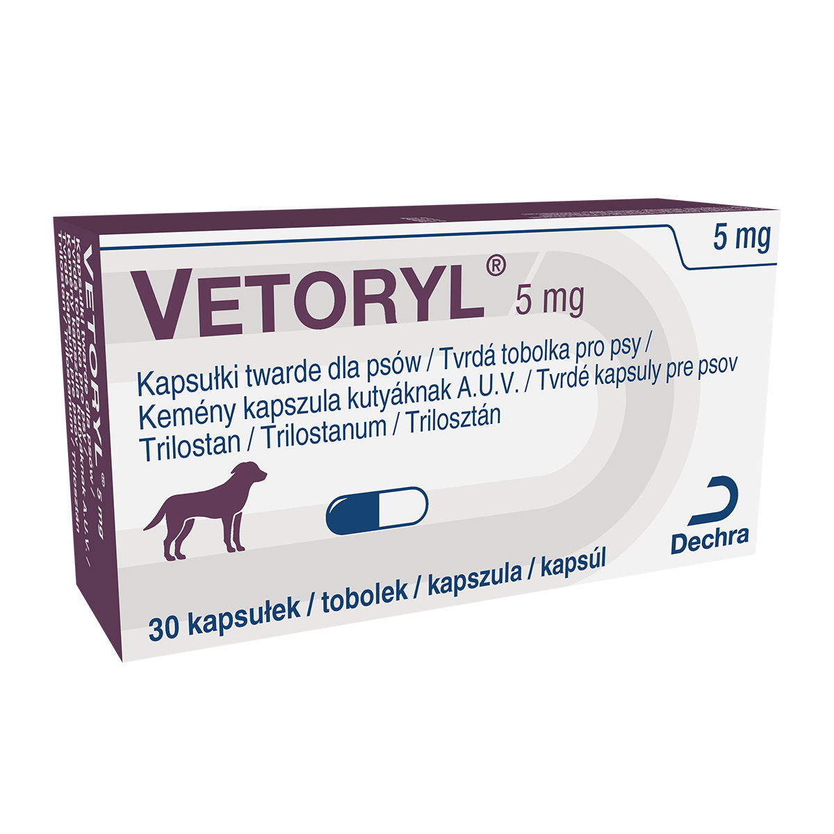 Веторил — ветеринарный лекарственный препарат на основе трилостана (trilostane), предназначенный для контроля эндогенного гиперадренокортицизма (болезни Кушинга) у собак, как при гипофиз-зависимой, так и при адренал-зависимой форме. Упаковка 5 мг удобна для мелких собак и для точной титрации дозы.